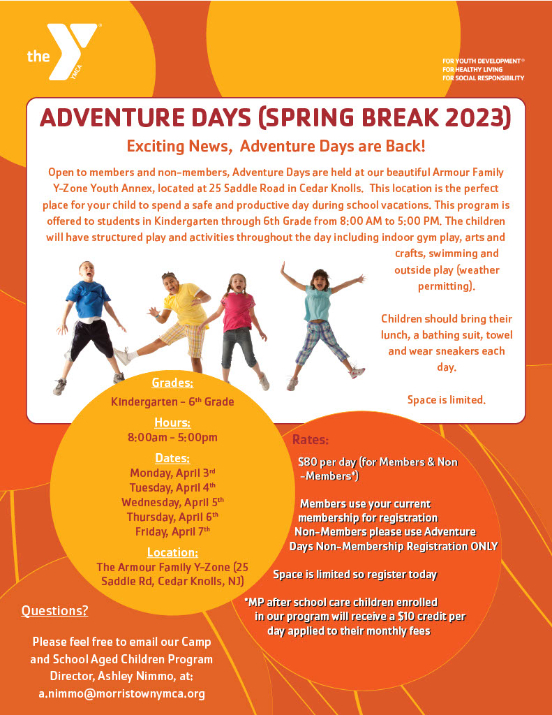 Any questions please contact Ashley (Camp & School Aged Children Program Director) at a.nimmo@morristownymca.org.